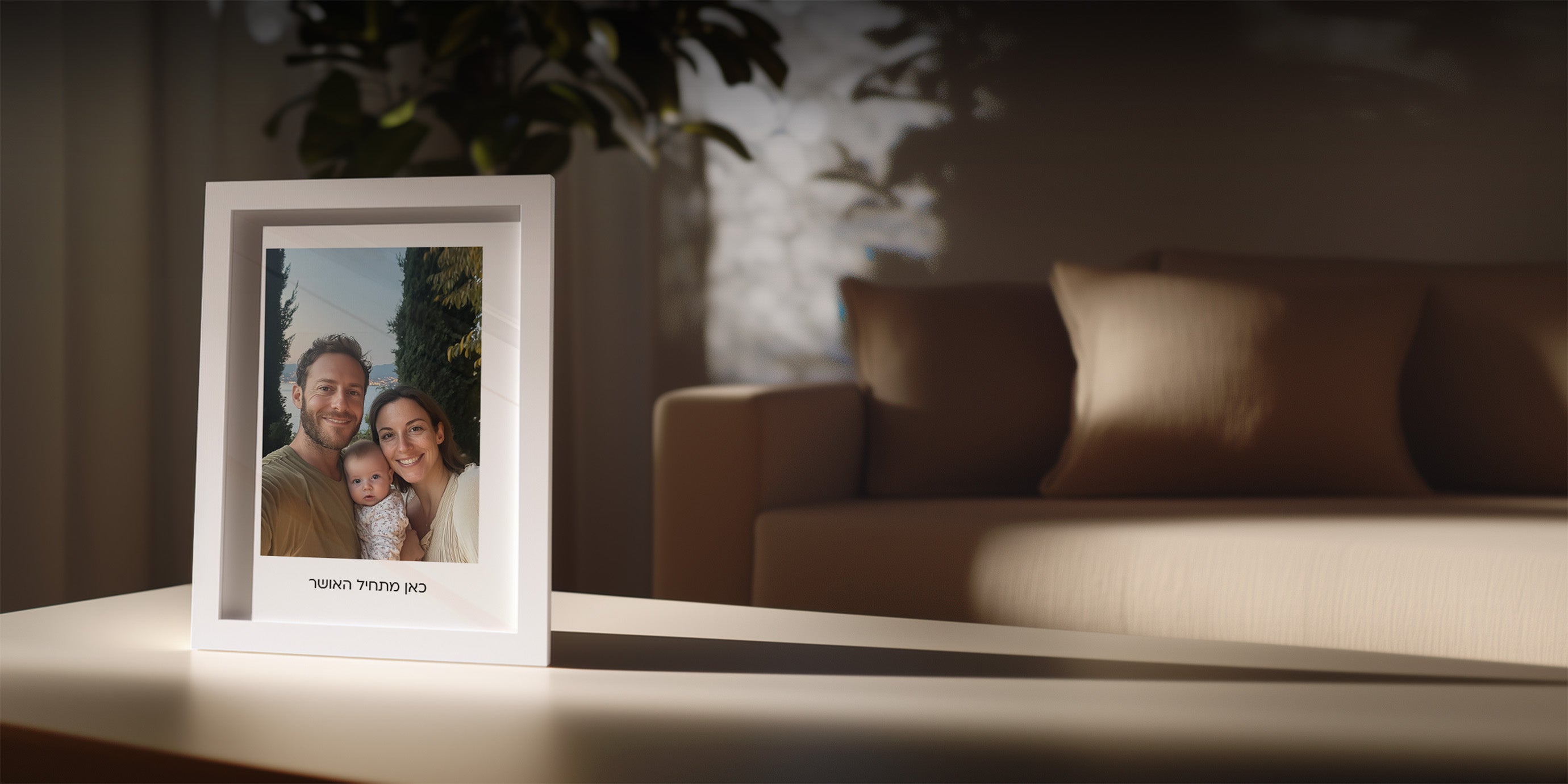 תמונה ממוסגרת החוזרת לרגע מיוחד או הדפסת תמונה עם הקדשה, יהפכו כל תמונה למתנה אישית ומרגשת.
